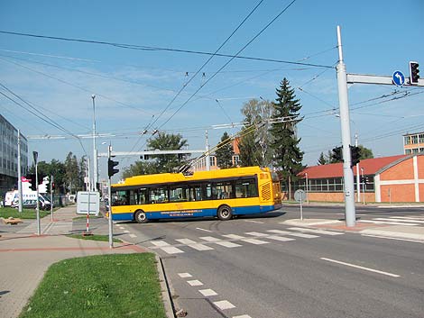 Trolejbus odbočující na novou točnu.