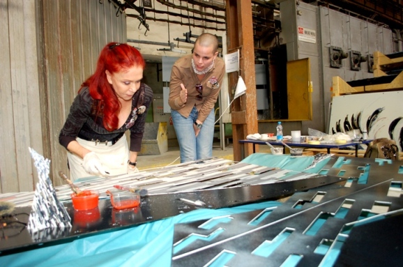 Účastnicí sympozia jsou v Ostravě už od 23. dubna, do provozu smaltovny, kde se pak tradičně odehrává tvůrčí proces ve zvláštní atmosféře míchající uměleckou tvorbu pozvaných autorů s řemeslnou zručností dělníků a technik, vstoupili v úterý. Dnes většinou už finalizují své práce, které budou přes víkend zcela dokončeny a připraví se na vernisáž v první květnový den. Kurátorkou sympozia je i letos Ivana Štenclová, organizátorem znovu Vladimír Chaloupecký. Oba si od tohoto ročníku slibují, že přitáhne ještě větší zájem veřejnosti, protože smaltování překonává hranice běžné plošné malby.